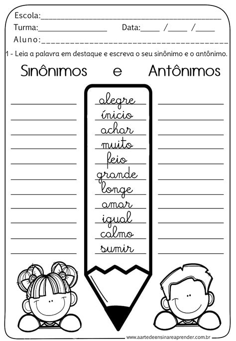 Escola Saber Atividades de sinônimo e antônimo para imprimir from escolasaber.blogspot.com