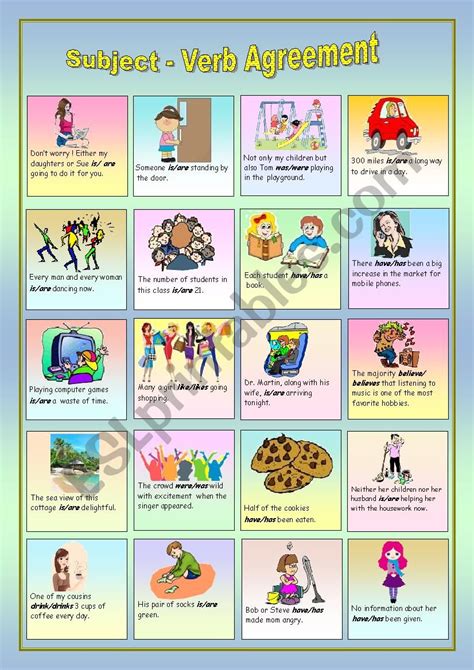 Verb = green, underline subjects and. In the english language, subjects and verbs must always agree in number. Web this animated resource page with lesson plans and teaching tips, for kindergarten, 1st, 2nd, and 3rd grade explores singular and plural subject verb agreement in sentences using.