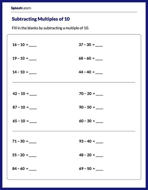 Improve your skills with free problems in 'subtract multiples of 10' and thousands of other practice lessons. Teach your students / kids subtracting numbers with multiples of ten and then let them do the. Web learn to subtract multiples of 10 with these printable math worksheets on subtraction.