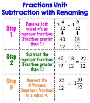 Web practice renaming fractions to subtract in a fun way! Web there are 3 simple steps to subtract fractions step 1. Web when a student renames a fraction, it transforms into a mixed number, which is the fraction’s proper form.