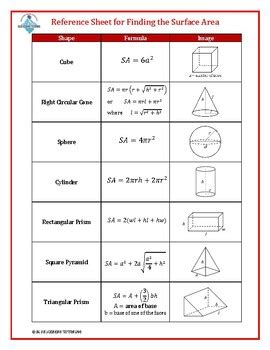 Volume Surface Area Formula Sheet Yearbook Pinterest Area formula from www.pinterest.com