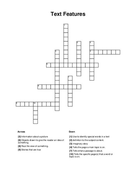 A visual that shows something related to the text. Web text features crossword puzzle printable. It sums up the paragraph or section you are about to read, usually in bold or colors.